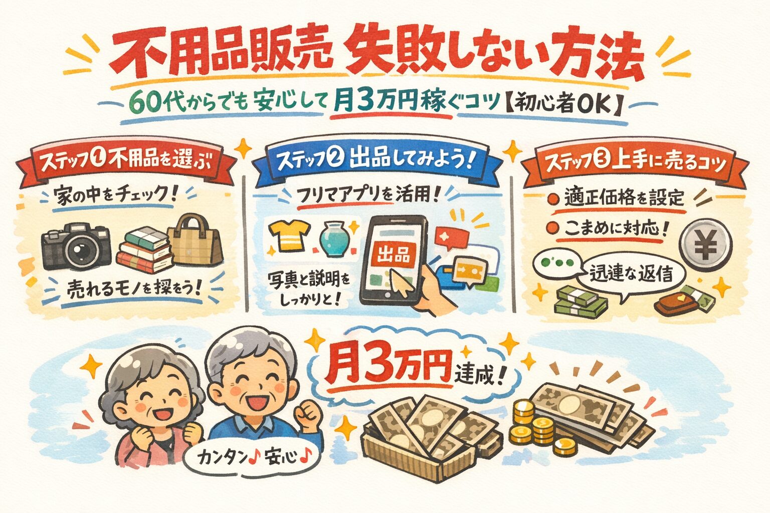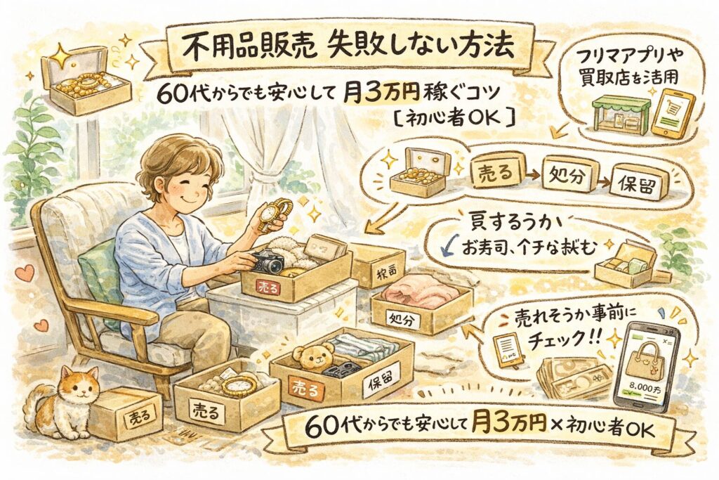 不用品販売 失敗しない 方法|60代からでも安心して月3万円稼ぐコツ【初心者OK】