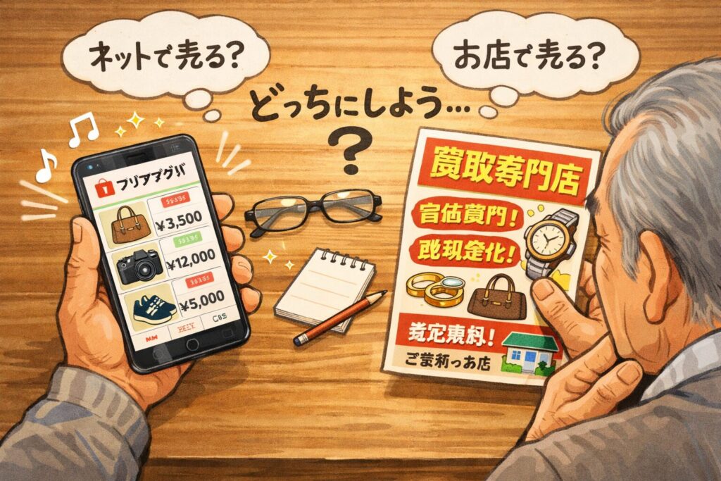 販売先を「メルカリ」などのフリマアプリ一点に絞らないことが、習慣を止めないための「逃げ道」になります。すべての作業を自分でこなそうとすると、特に思い入れの強い品物ほど、説明文の作成や価格設定に迷いが生じ、手が止まってしまうからです。