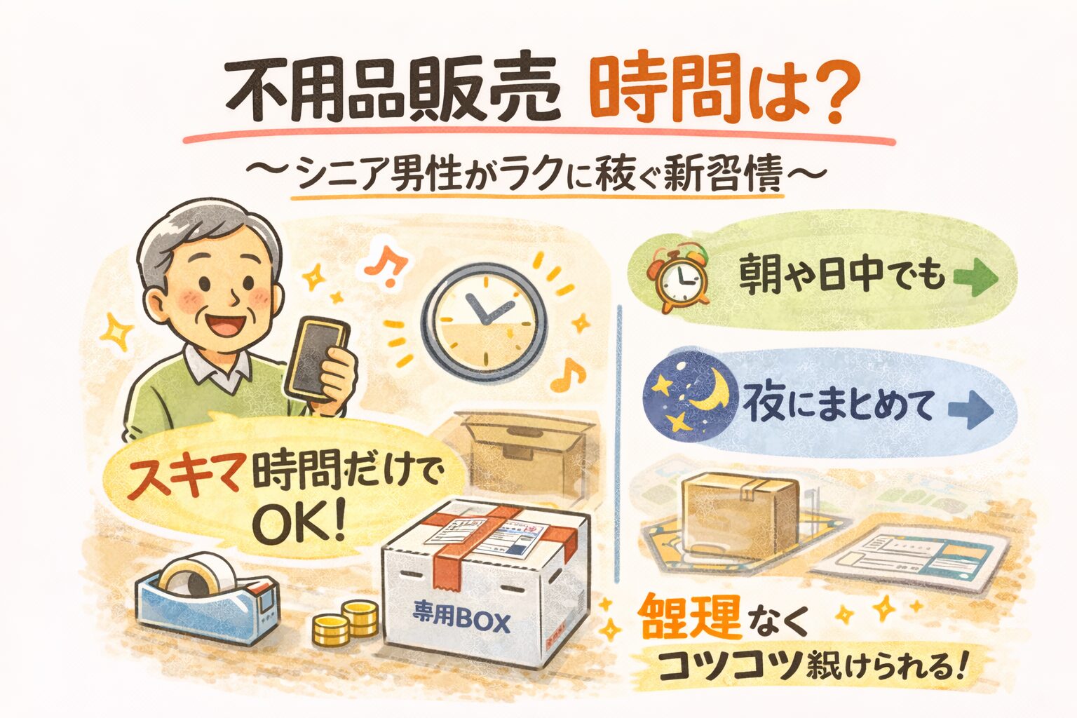 長年勤め上げた会社を退職し、ようやく手に入れた自由な時間。「せっかくだから家の中の不要なものを整理して、清々しく過ごしたい」と考えるのは、とても素敵な決断です。しかし、いざ不用品販売に興味を持っても、多くのシニア世代を躊躇させるのが「一体どれくらいの時間が取られるのか?」という懸念ではないでしょうか。