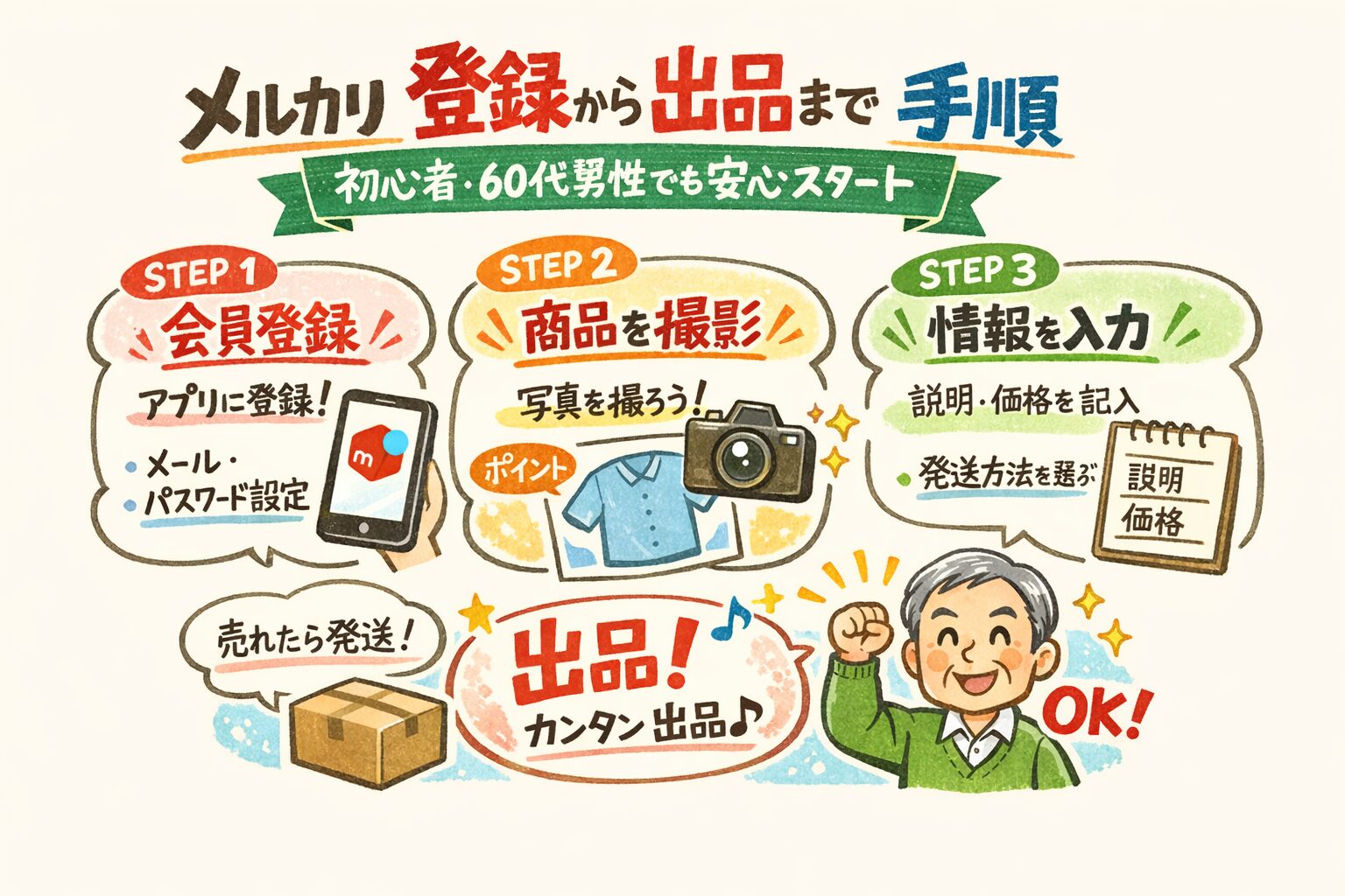 メルカリ 登録から出品まで 手順|初心者・60代でも安心スタート