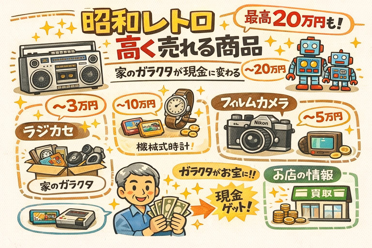 この記事では、昭和レトロで高く売れる商品の具体例から、60代・70代の方が無理なく、そして失敗せずにこれらを現金化する知恵をまとめました。難しい技術も、誰かと競う必要もありません。家をスッキリさせながら、趣味の旅行や美味しい食事のための「ちょっとした軍資金」を手に入れる。そんな、ワクワクするような「お宝探し」の時間を、今日から始めてみませんか。