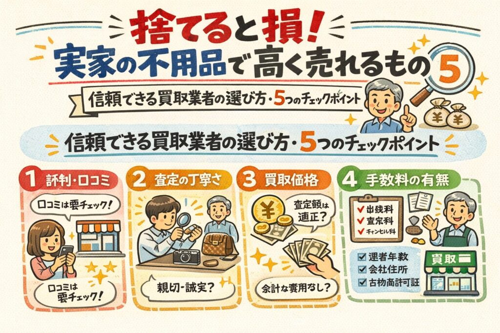 大手リユース業者の利用調査(2025年シニア層対象)によると、60歳以上のユーザーの約85%が「運搬の負担がないこと」と「対面で説明を受けられること」を出張買取の満足理由として挙げています。また、自分では価値がないと思っていた「ついでに出したもの」に思わぬ高値がつき、驚きと喜びに包まれることも出張買取ならではの醍醐味です。